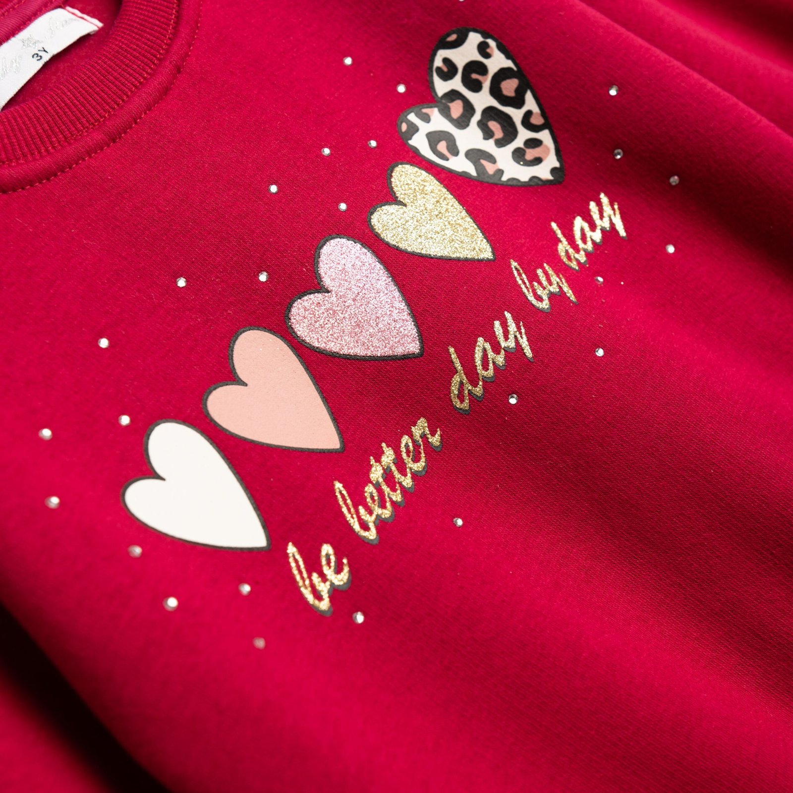 Φόρμα φούτερ για κορίτσι 2-6 ετών σε χρώμα τριανταφυλλί/ τριανταφυλλί με τύπωμα στην μπλούζα (καρδιές). 60% COTTON-40% POLYESTER
