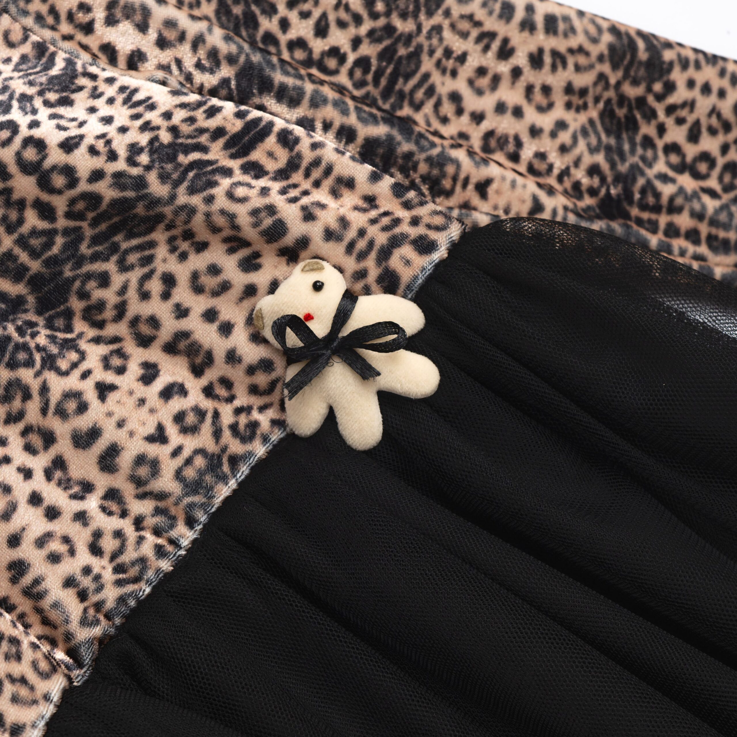 Φόρεμα βελουτέ με τούλι για κορίτσι 2-6 ετών σε χρώμα λεοπάρ/ μαύρο με λεπτομέρεια με αρκουδάκι. 95% POLYESTER-5% ELASTAN+100% POLYESTER