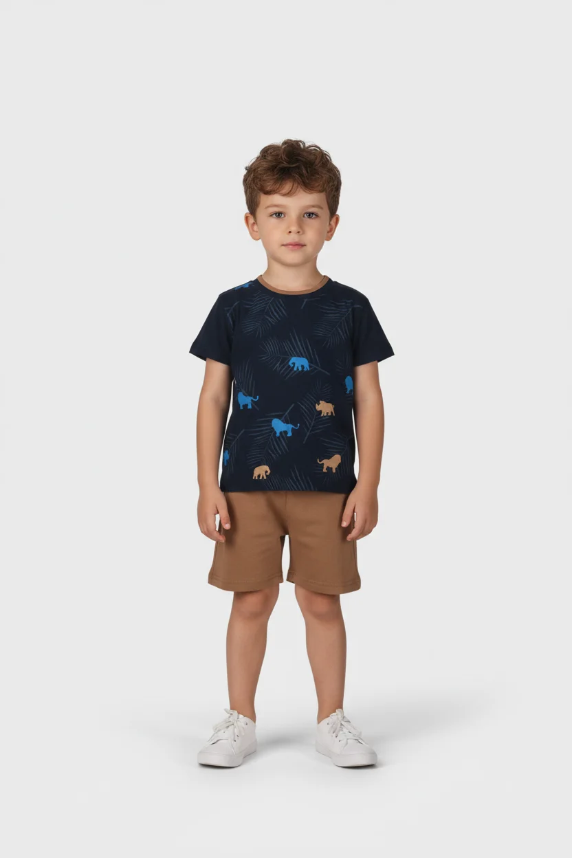 • 2612114 Joyce Σετ μπλούζα βερμούδα αγόρι μπεζ χακί
