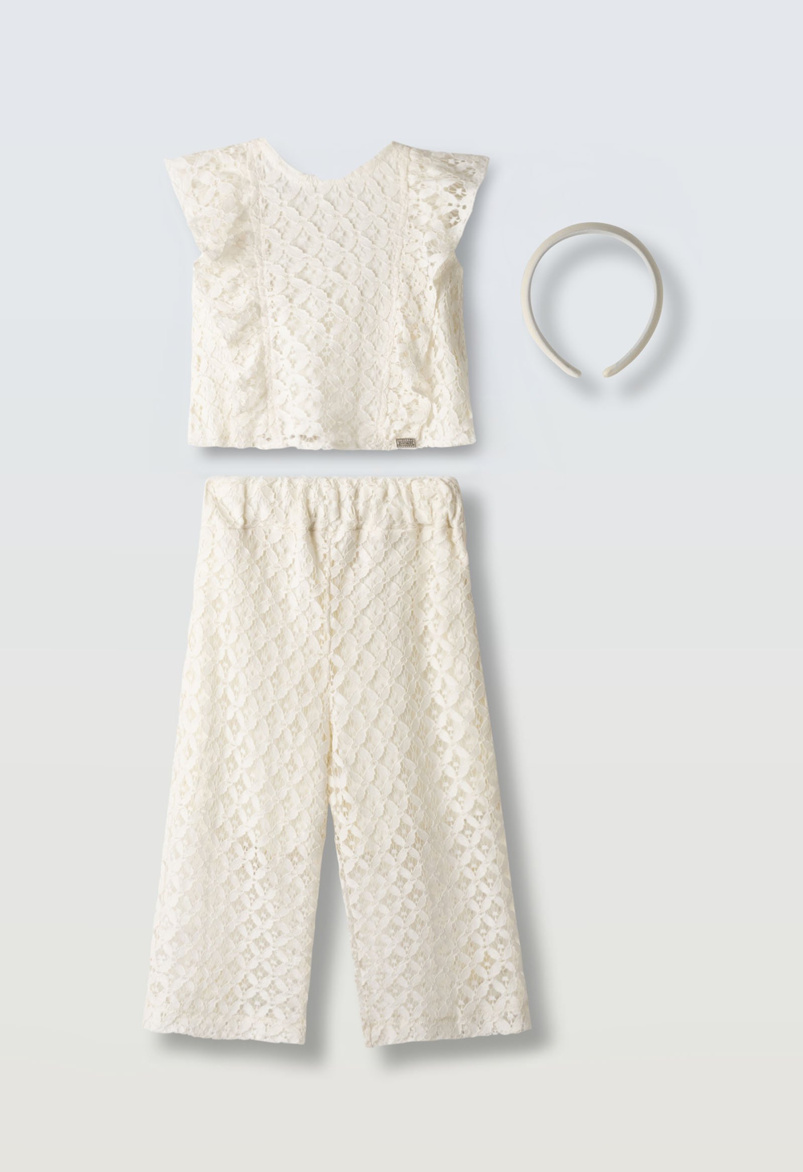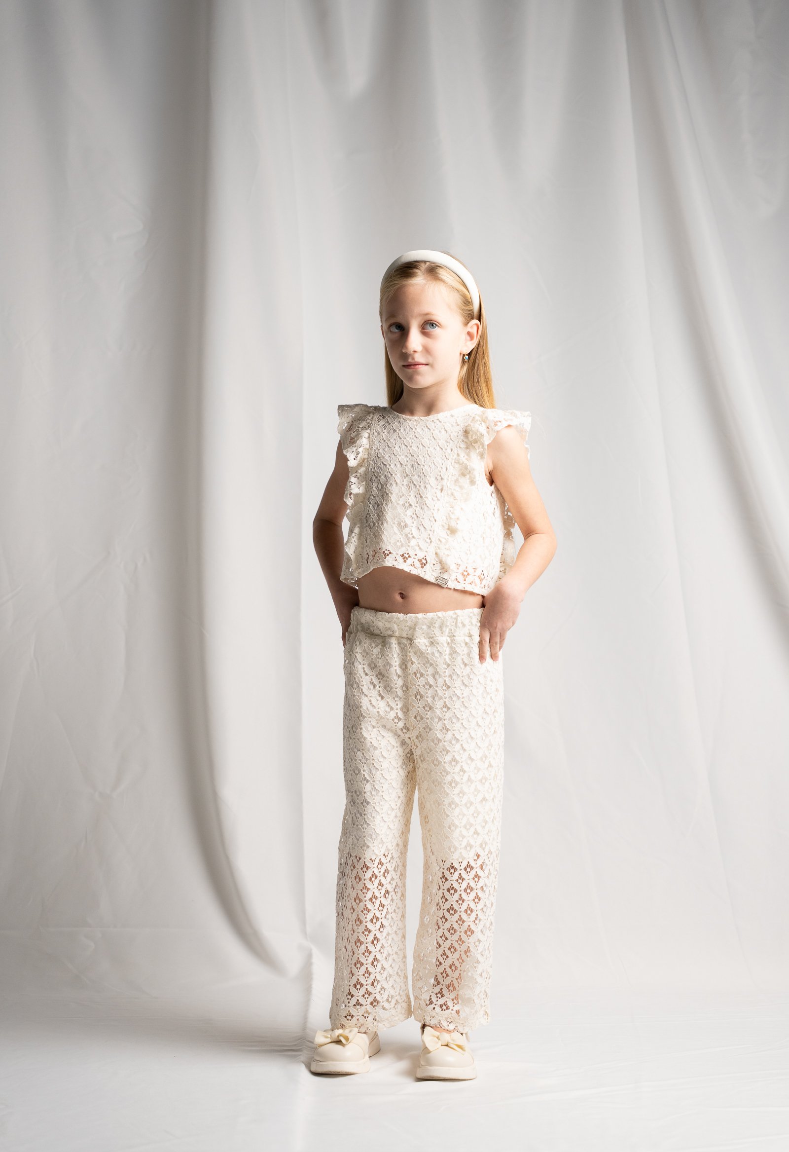 266201 Ebita Σετ μπλούζα παντελόνα στέκα κορίτσι εκρού