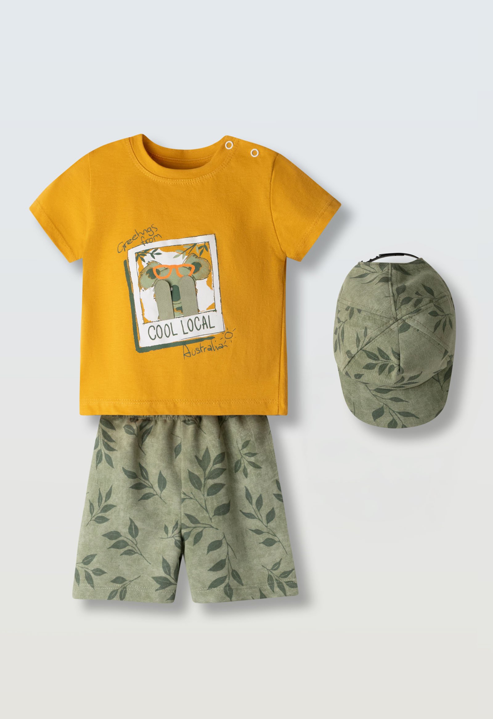 266606 Hashtag Σετ μπλούζα βερμούδα καπέλο μηνών αγόρι πορτοκαλί
