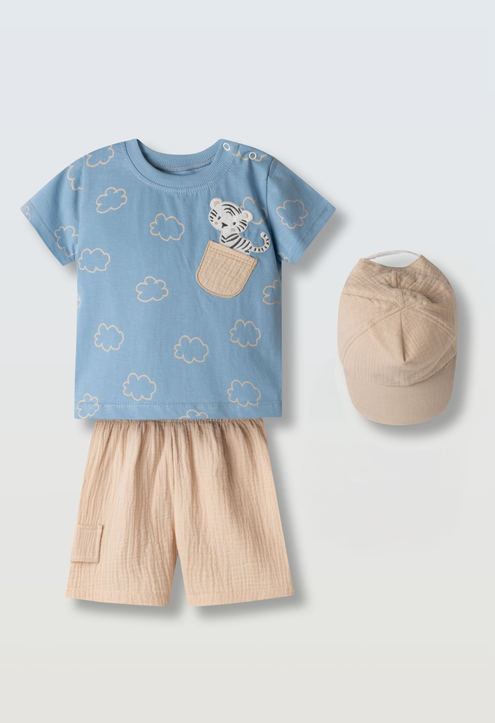 266611 Hashtag Σετ μπλούζα βερμούδα καπέλο μηνών αγόρι σιέλ