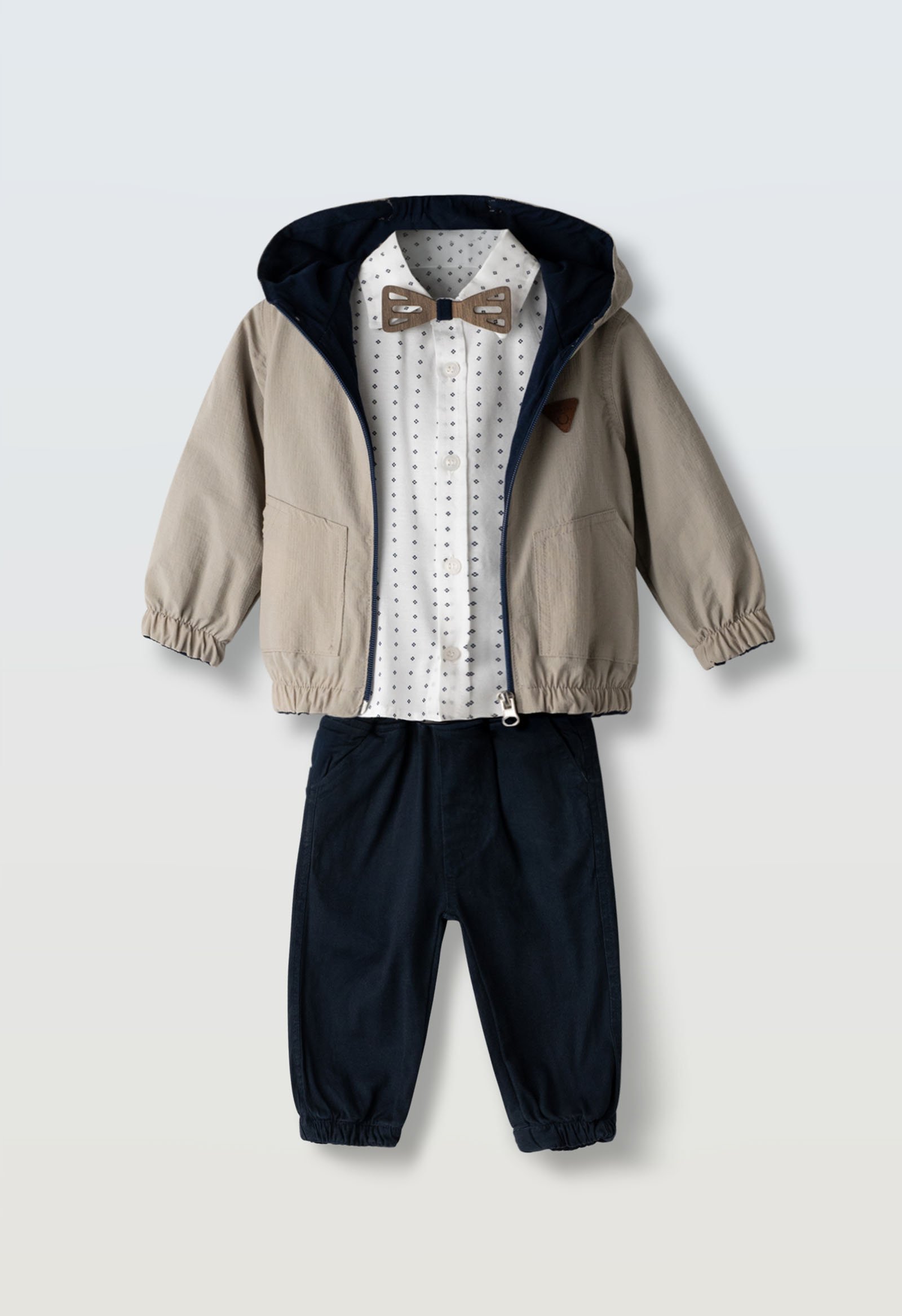 266616 Hashtag Σετ πουκάμισο παντελόνι μπουφάν μηνών αγόρι μπεζ