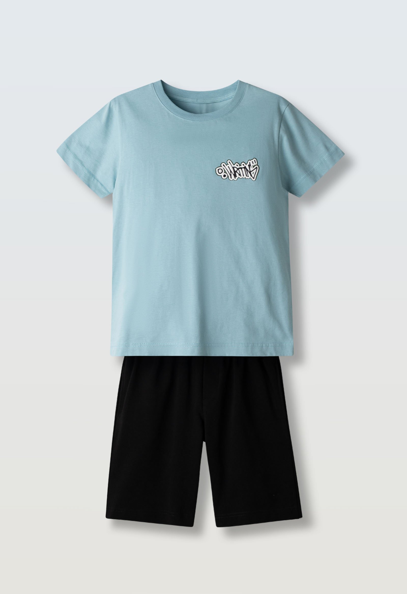 266712 Hashtag Σετ μπλούζα βερμούδα αγόρι γαλάζιο μαύρο