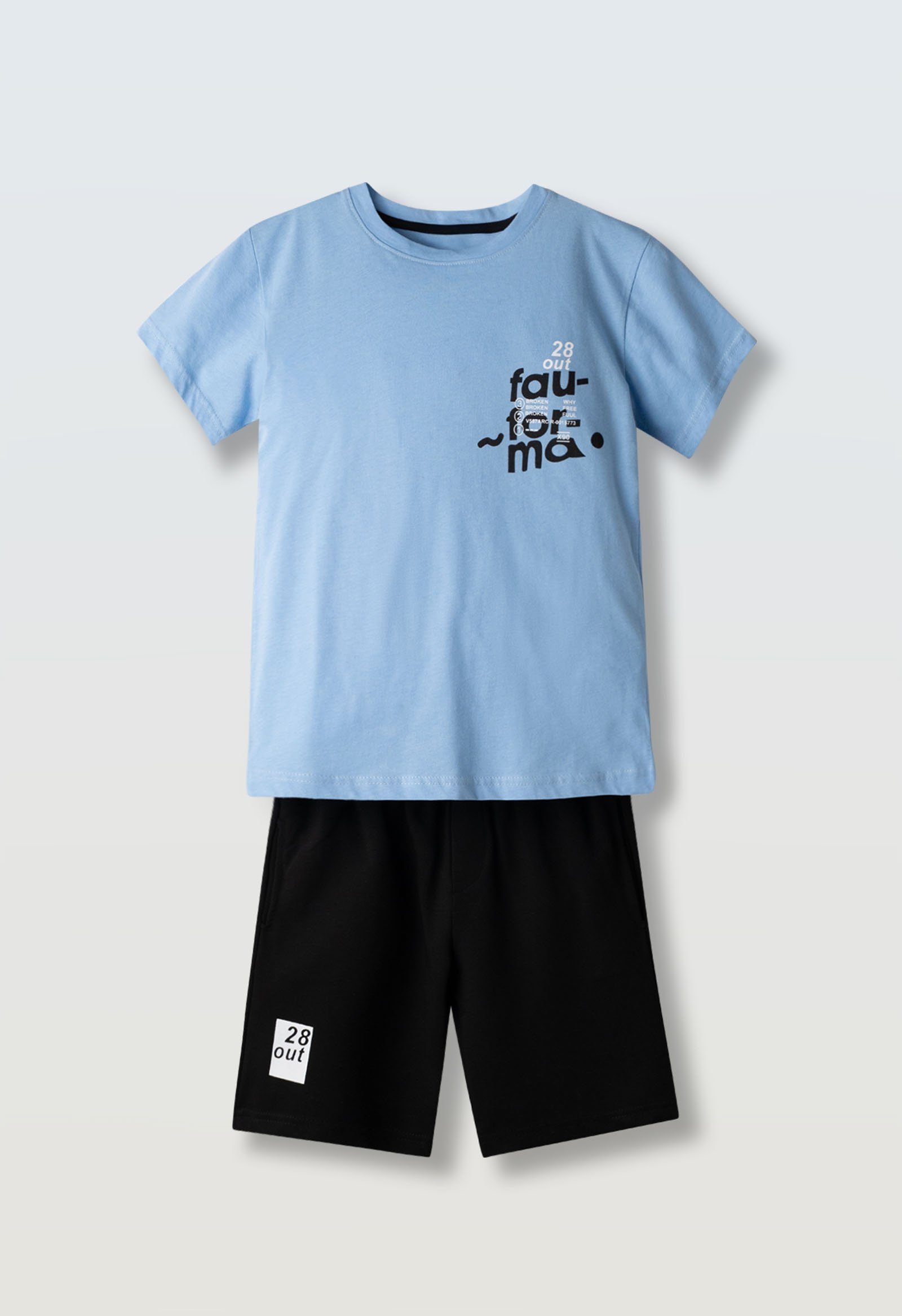 266713 Hashtag Σετ μπλούζα βερμούδα αγόρι γαλάζιο μαύρο