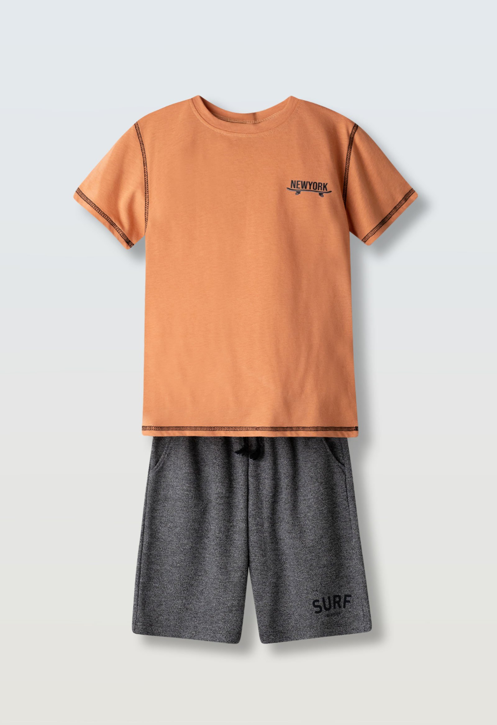 266740 Hashtag Σετ μπλούζα βερμούδα αγόρι πορτοκαλί μαύρο