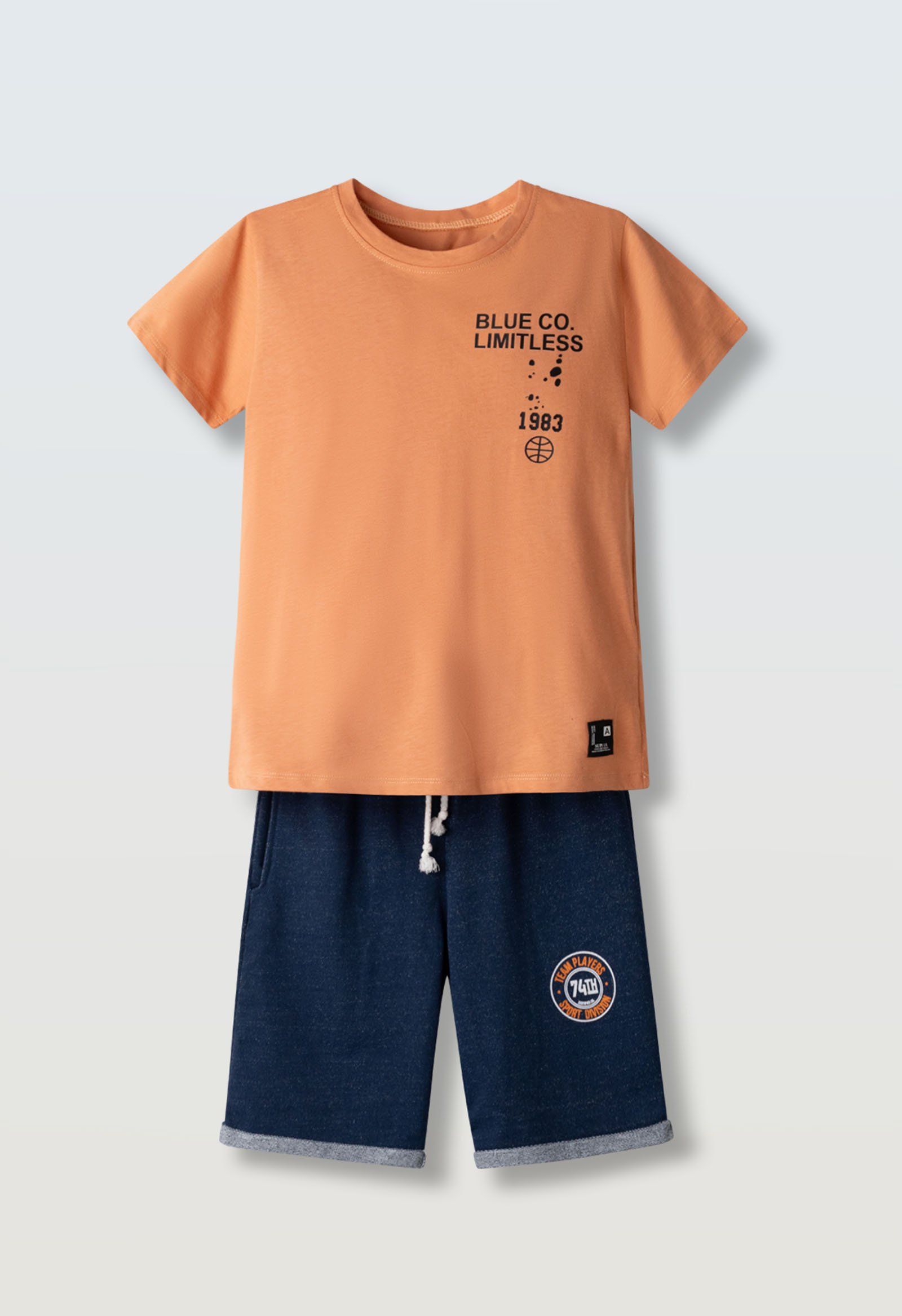 266741 Hashtag Σετ μπλούζα βερμούδα αγόρι πορτοκαλί μπλε