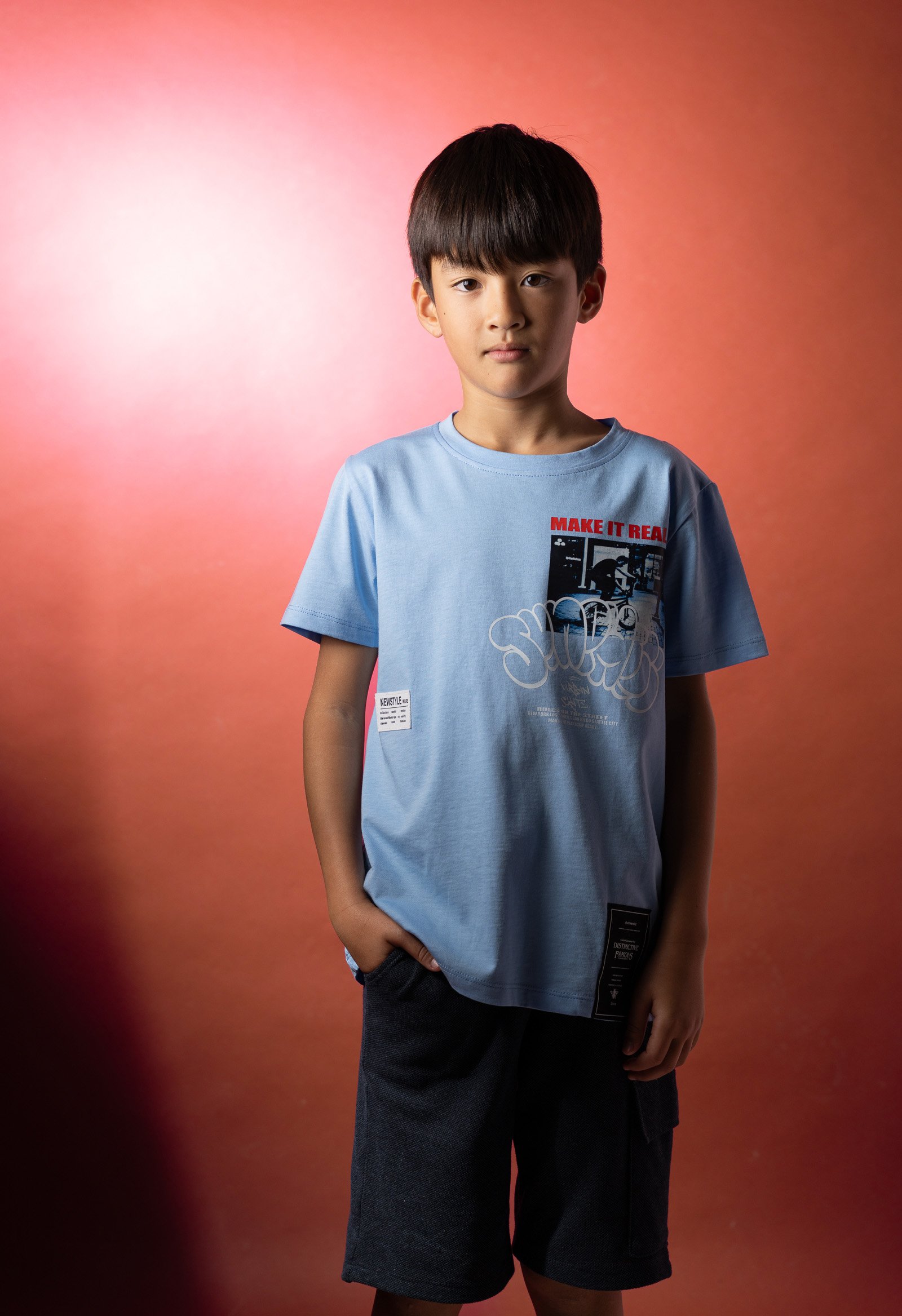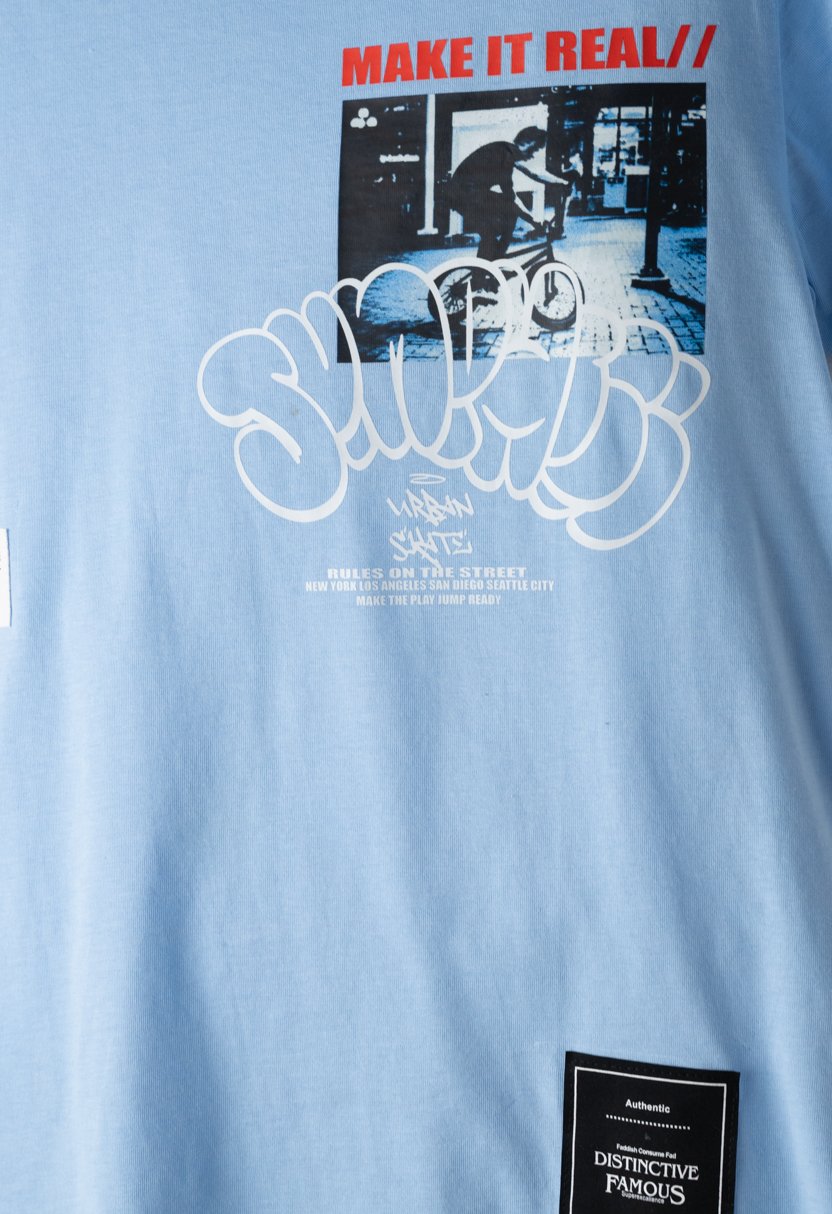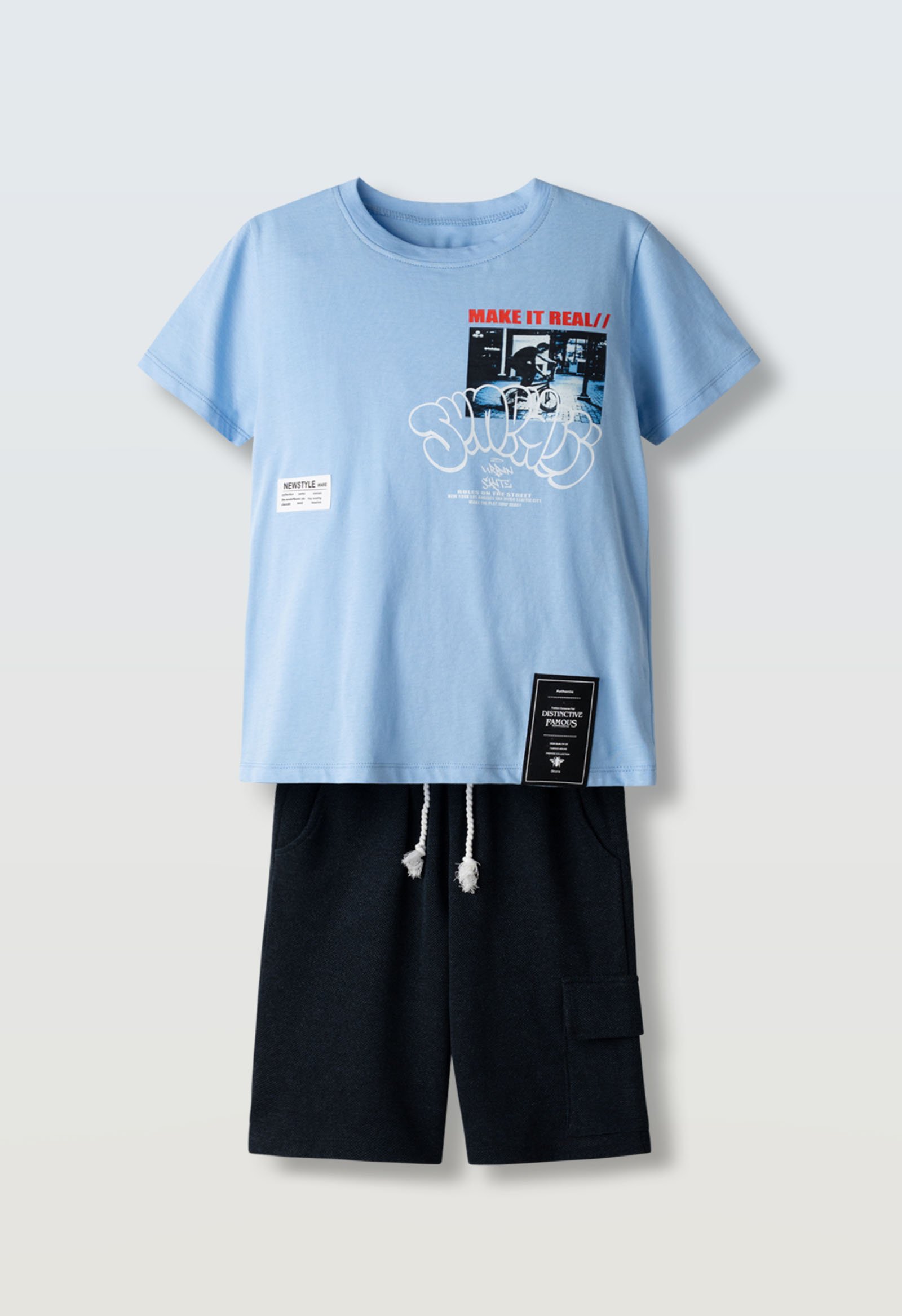 266742 Hashtag Σετ μπλούζα βερμούδα αγόρι σιέλ μπλε