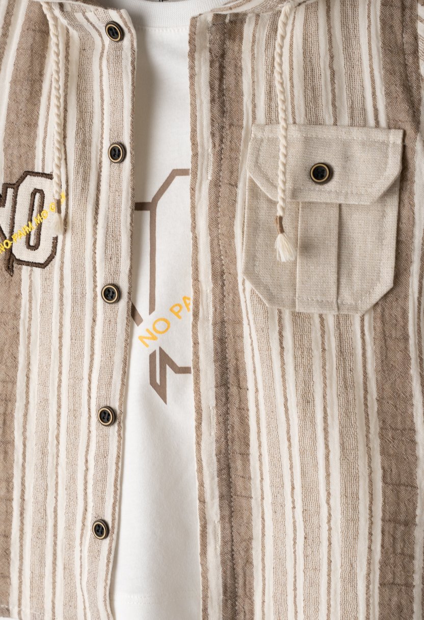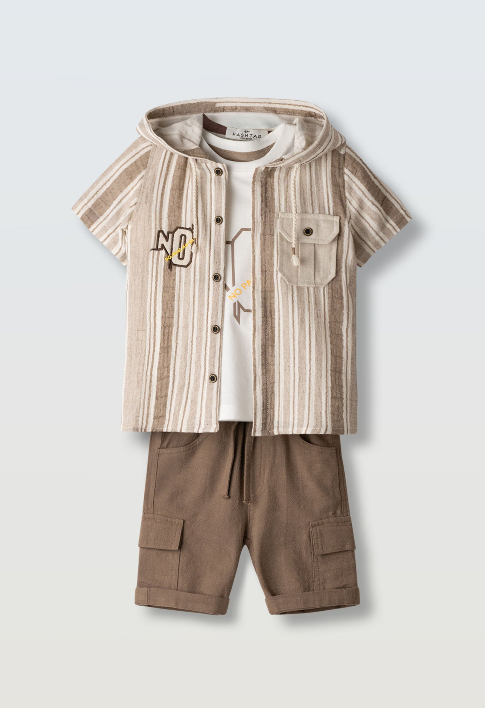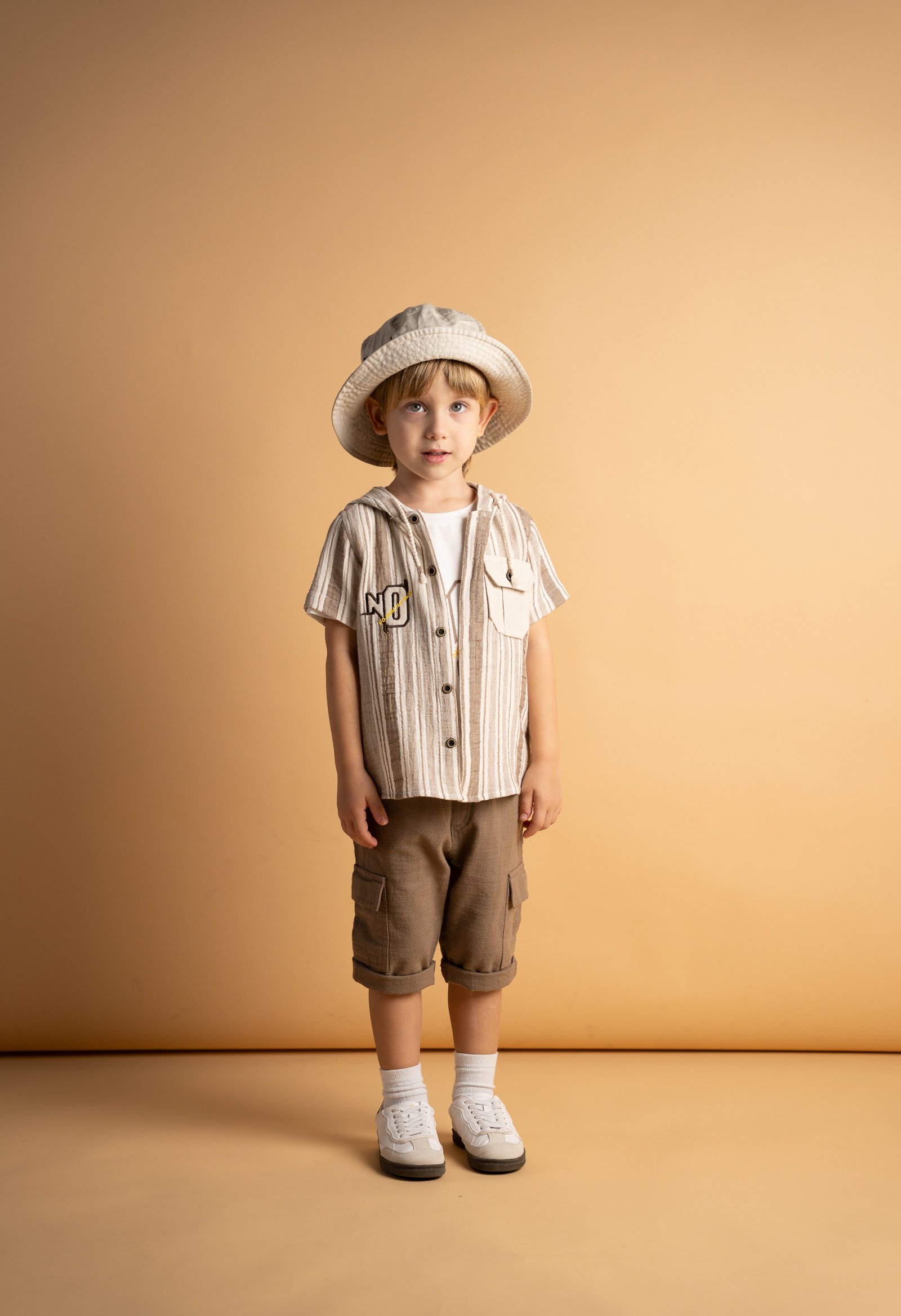 266801 Hashtag Σετ μπλούζα πουκάμισο βερμούδα cargo αγόρι μπεζ