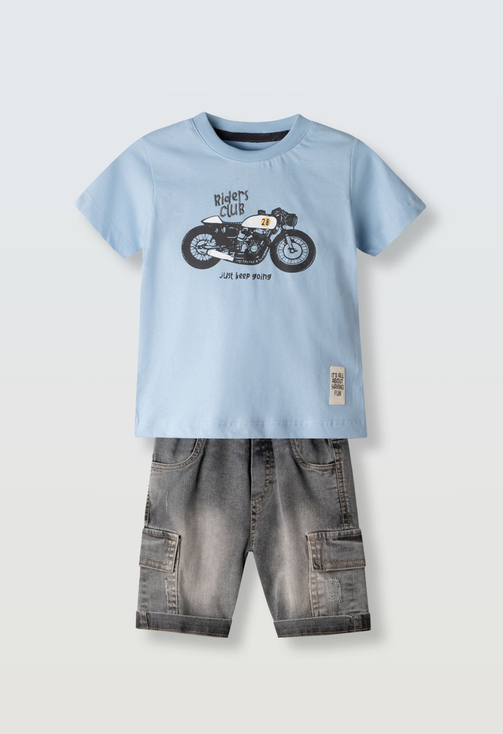 266804 Hashtag Σετ μπλούζα πόλο βερμούδα τζιν αγόρι μπλε