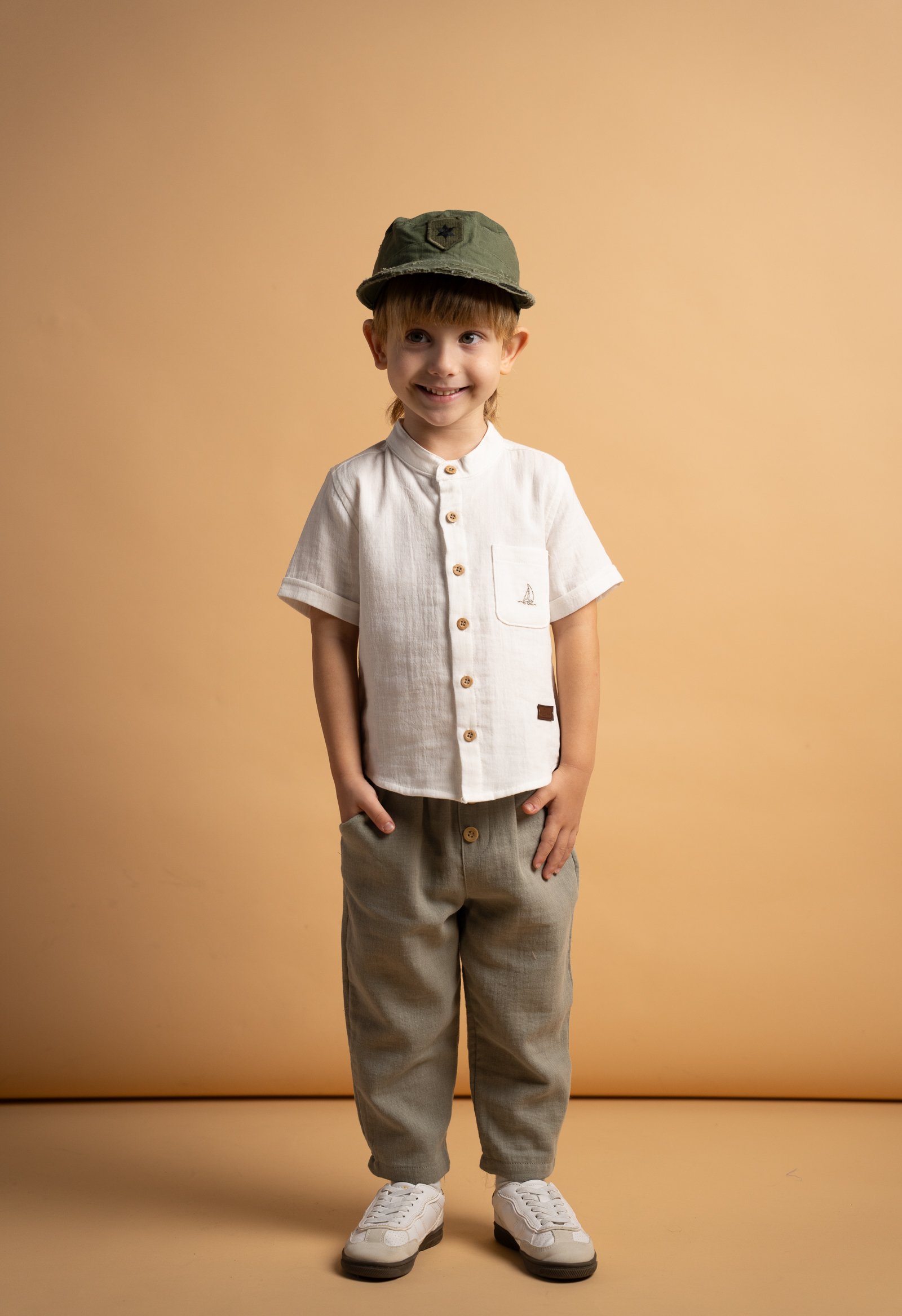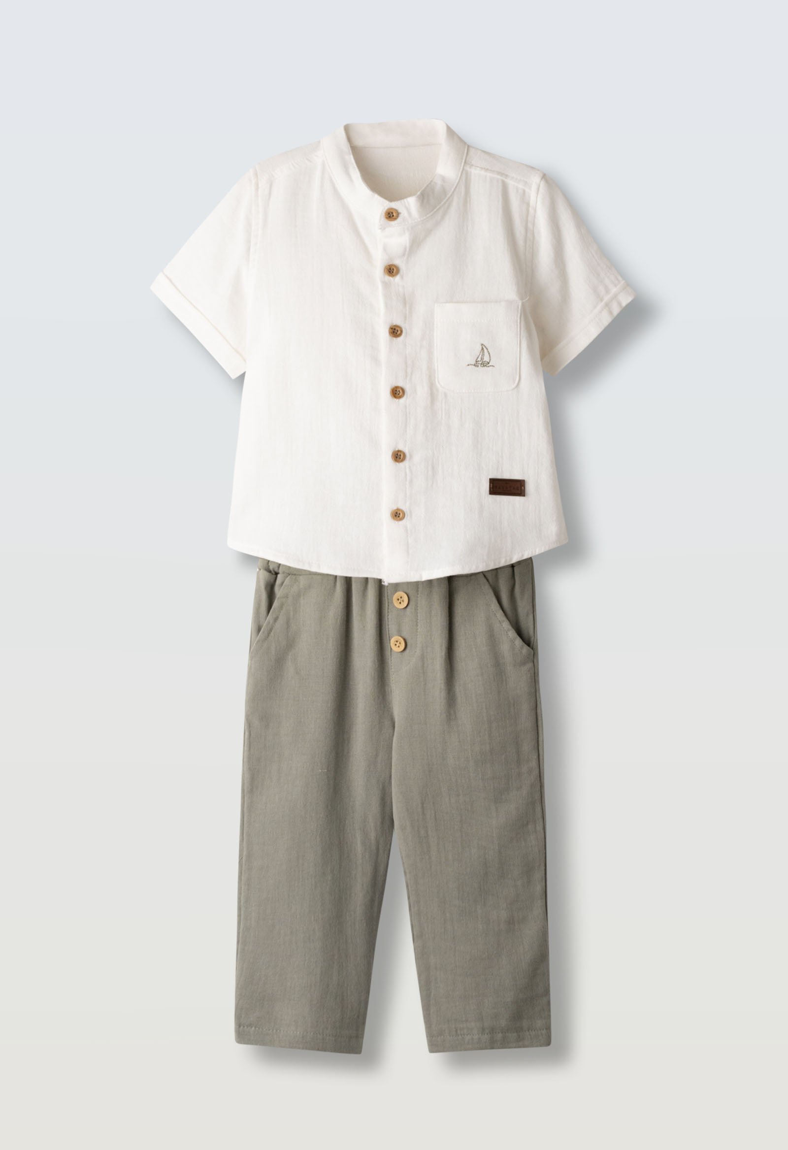 ΑρχικήΚαλοκαιρινά266817 Hashtag Σετ πουκάμισο μάο παντελόνι αγόρι λευκό χακί