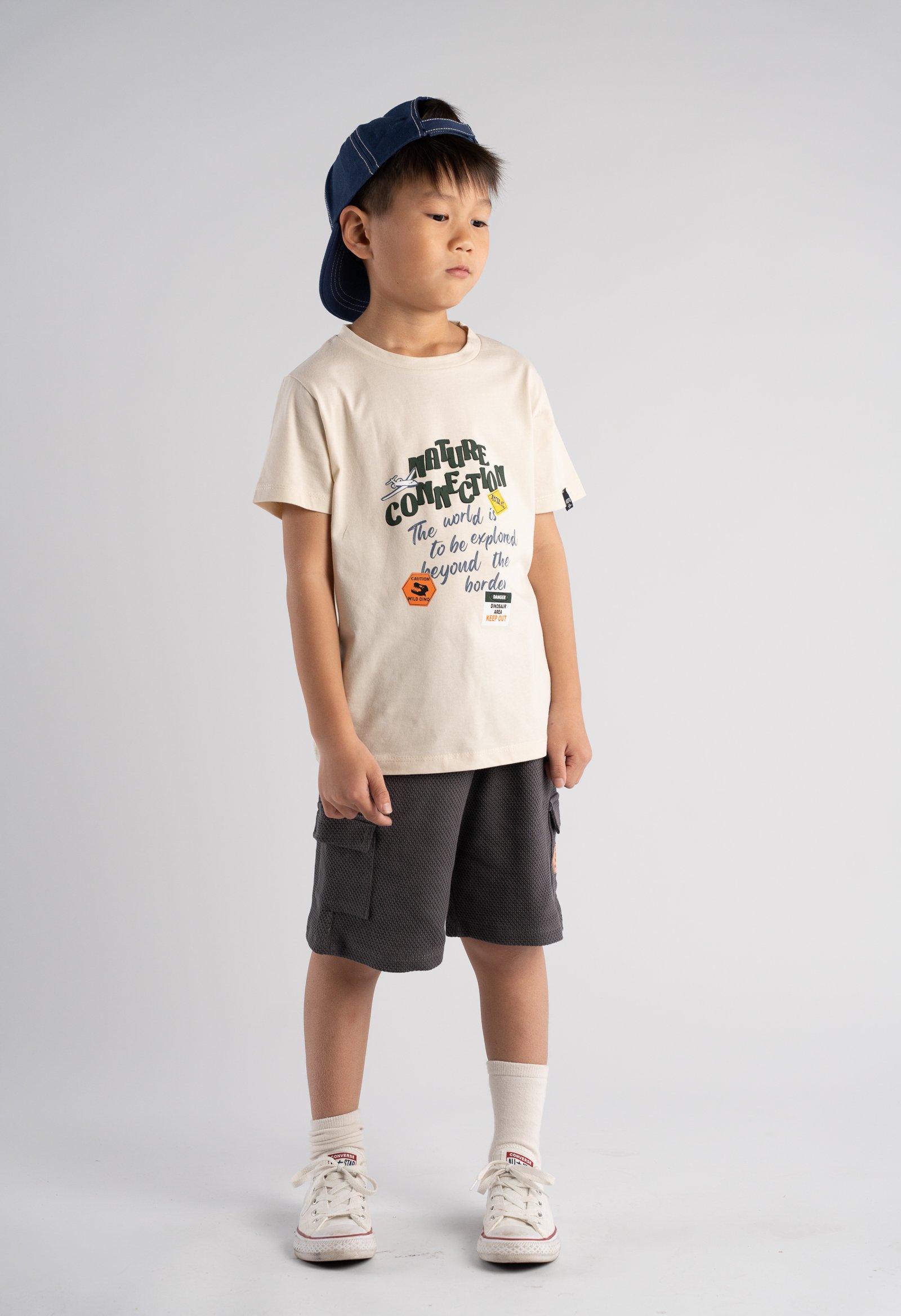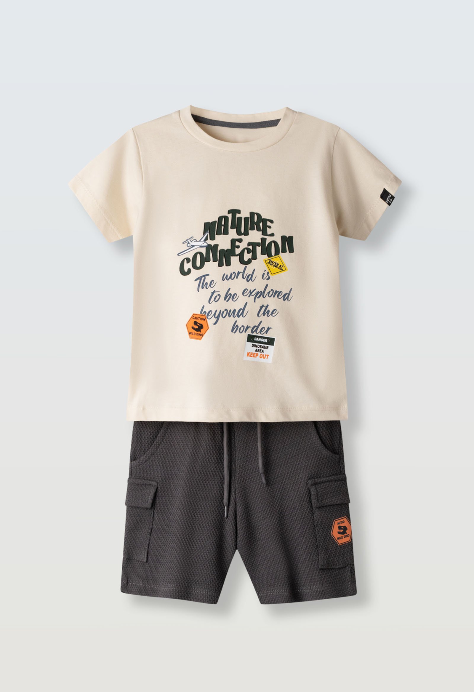266839 Hashtag Σετ μπλούζα βερμούδα αγόρι εκρού ανθρακί